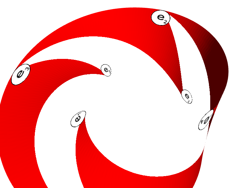 So the triangle \( e_1, e_2, e_3 \) represents the identities \( e_1 \cdot e_2 = e_3 \), \(e_2 \cdot e_3 = e_1\), and \(e_3 \cdot e_1 = e_2\).